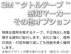 R-2L※販売終了(在庫限り)タトルテープ ™ 感知マーカー装着機M-611専用のロール状感知マーカー。 両面接着剤付。 (※1箱7,500本入り) |