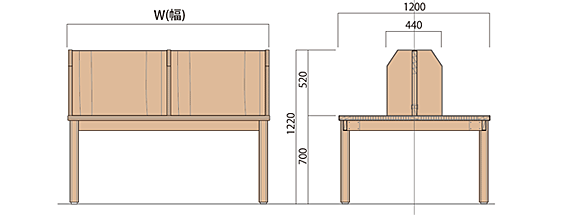 W1600×D1200×H1220(700) ¥485,000(税抜き) |