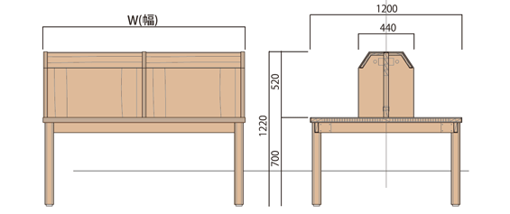 W1800×D1200×H1220(700) ¥426,000(税抜き) |