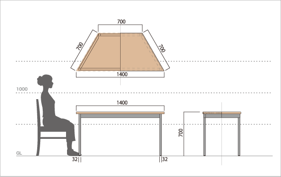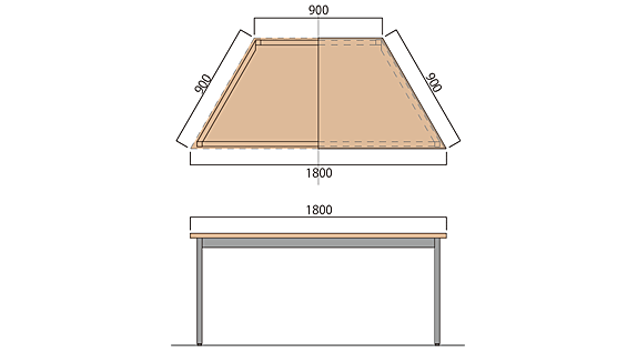 天板が台形のテーブルです。